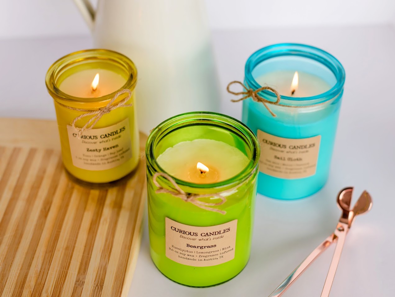 We are a couple living in Austin, Texas. We absolutely love candles and use them for any occasion. Our journey started when we were removing several products made with toxic materials from our life. Our goal was to replace them with alternatives that are more natural. During this time, we also started looking for a cleaner burning candle. While there are many good options, we discovered a fun activity: pouring our own candles. We also found that the majority of candles were either clear or neutral colored jars. There are only very few colorful options. We have always been a couple that enjoys color around the house and felt that there was a need for more variety.